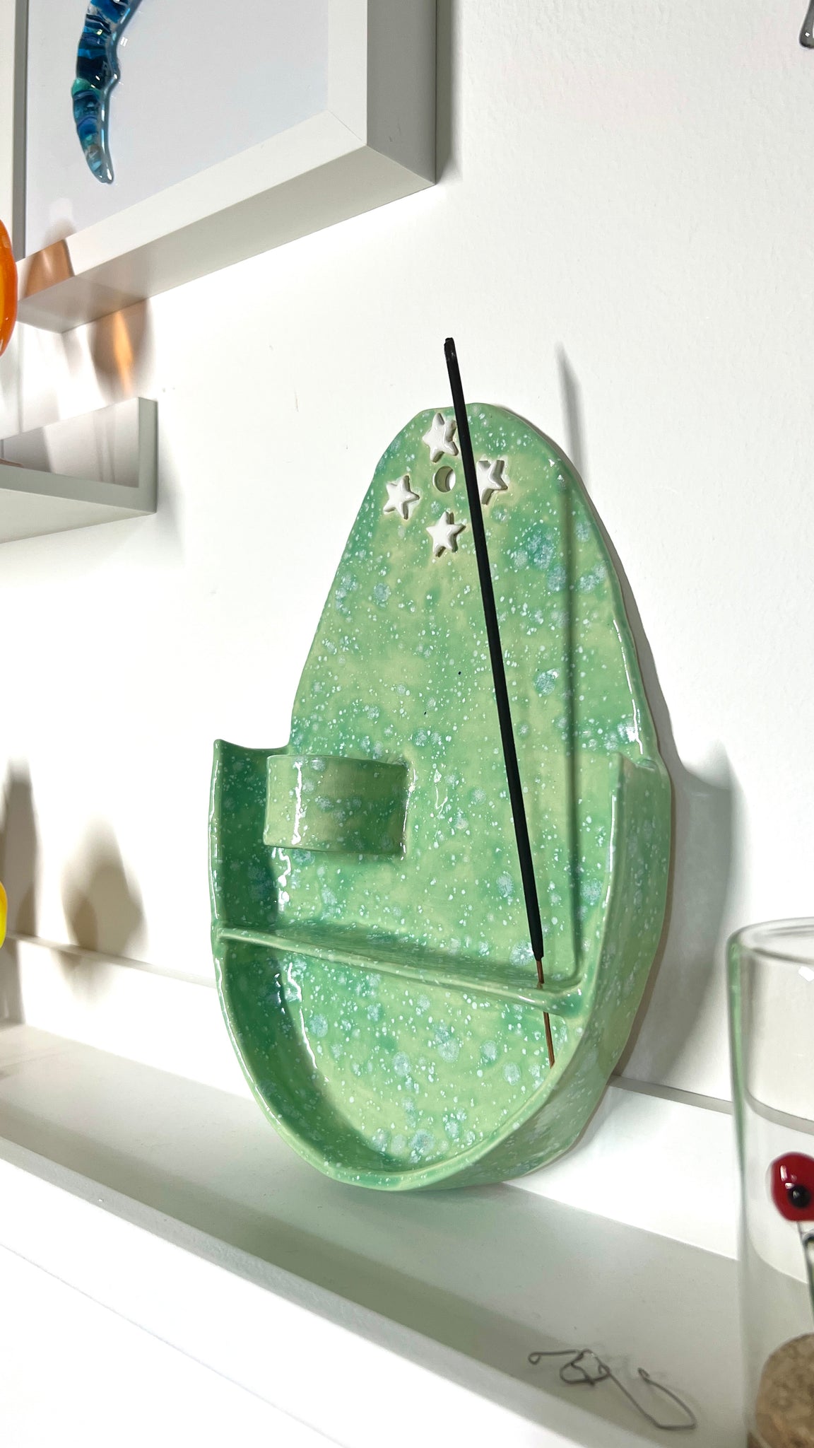 A little bit magical, a little bit practical…this handmade ceramic wall sconce is perfect for burning incense & storing a smudge stick.